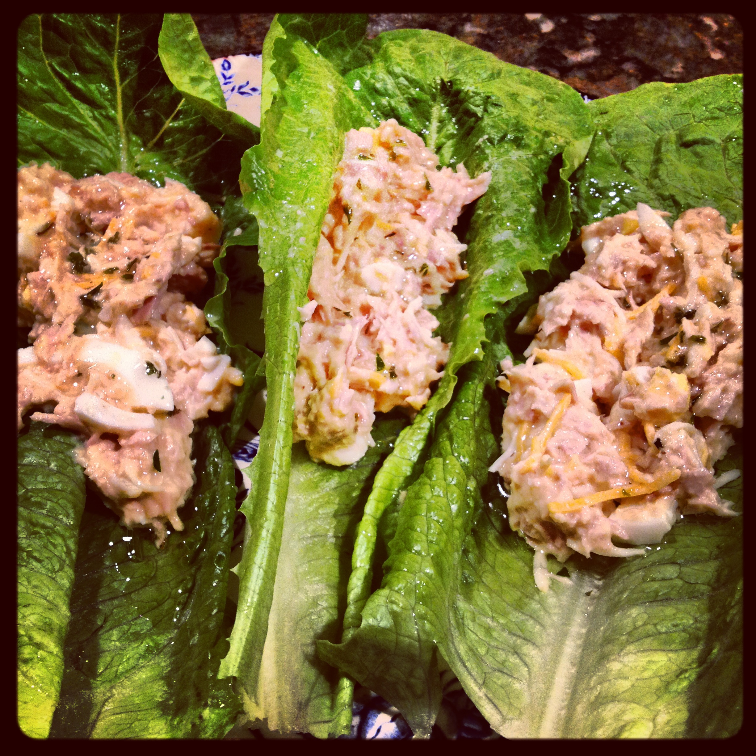 Pluck off three big leaves of romaine lettuce and fill them with tuna salad. Your dinner is served.