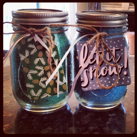 You will need (this is for one mix, roughly one mason jar): 2 cups Epsom salt, ½ cup sea salt, 2 tbsp. baking soda, food coloring and your choice of essential oils (peppermint, orange, cinnamon…etc.)