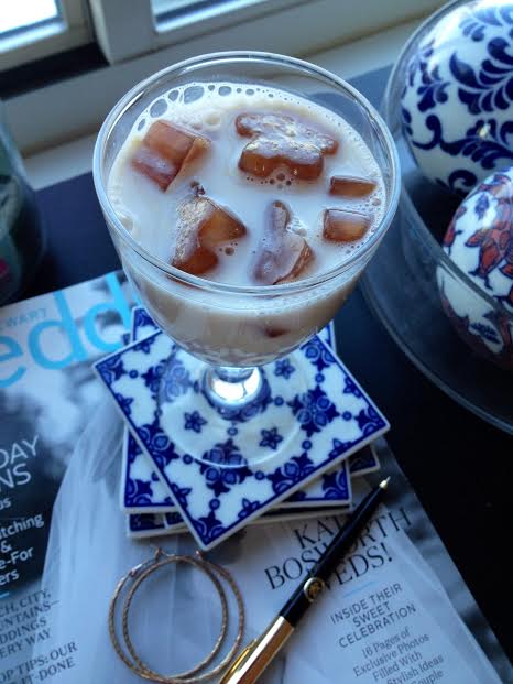 Pour your almond milk in a dainty glass and drop in your tea ice cubes. You will love this as a replacement for coffee in the morning.