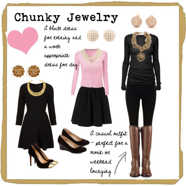 I put these looks together in this chart – as an example of an evening, work and weekend look where the chunky jewels are accomplished.