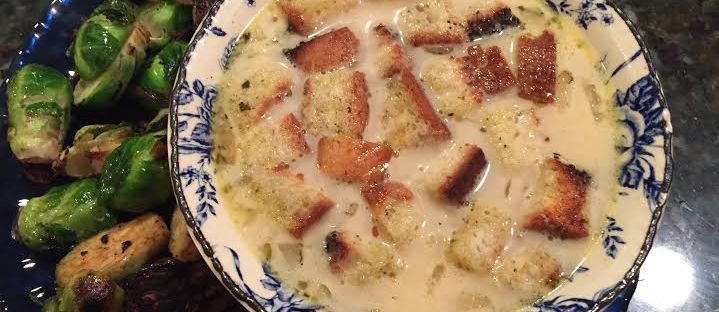 You will need: 1 quart of gluten free chicken broth, 1 cup water, ½ cup heavy cream, ½ yellow onion, 3 cloves garlic, 2 tbsp. Italian seasoning, salt and pepper, 1 bottle of gluten free beer (Red Bridge is readily available in grocery stores), 2 tbsp. butter, and 1 cup shredded mozzarella cheese.